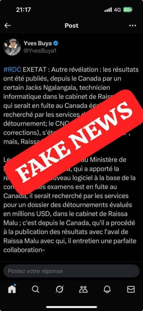Depuis plusieurs jours, des publications virales sur les plateformes sociales laissent entendre que les résultats de l’EXETAT ne proviendraient pas de Kinshasa, insinuant une supposée fraude ou une manipulation des données.