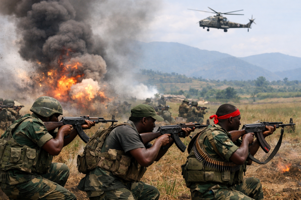 De violents affrontements sont actuellement signalés dans la plaine de la Ruzizi, au sud de la province du Sud-Kivu, dans l’est de la République démocratique du Congo. Les combats opposent les Forces armées de la République démocratique du Congo (FARDC), appuyées par des groupes d’autodéfense dits « Wazalendo », aux rebelles du M23, alliés à l’Alliance Fleuve Congo (AFC).